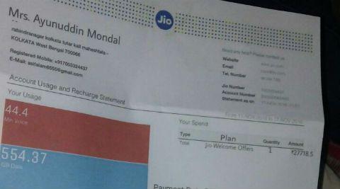 A new hoax is doing the rounds of India’s favourite messaging app, WhatsApp, claiming that a user was billed for Rs 27,718 by Reliance Jio while she was on the Jio Welcome offer. According to the image of the fake bill, Ayunuddin Mondal from Kolkata is required to pay this ridiculously large amount on the account of using 554.38 GB of data and 44 minutes of voice calling.Considering that Reliance Jio is offering charge-free service for the duration of the Jio Welcome Offer (valid upto December 31), it is not possible for a user to receive a bill.